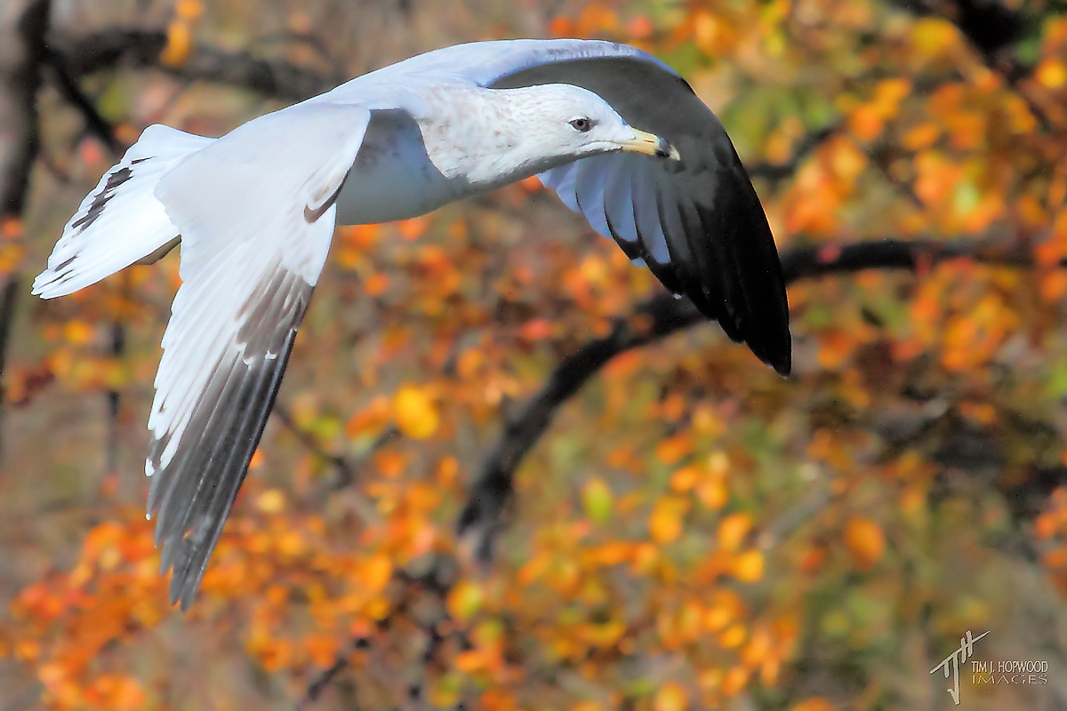 Ring-billed Gull fly by.